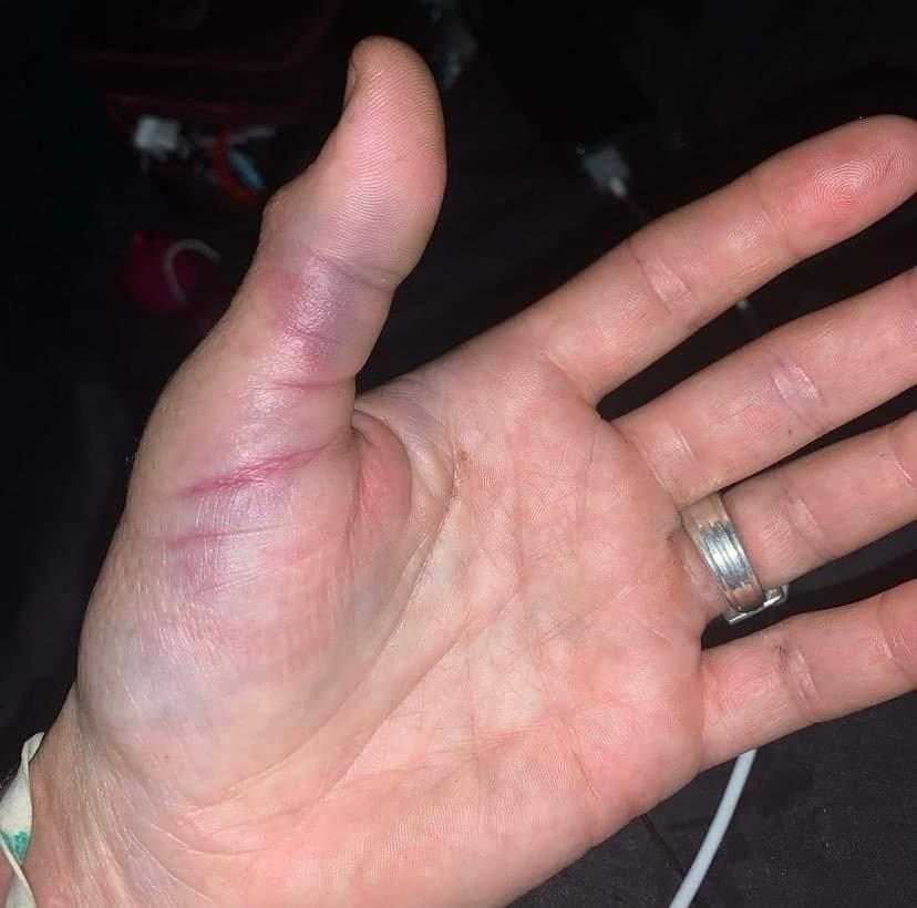 “I was told I had an extreme fracture of the bones in between my thumb knuckles. The bone was broken into three wedge-shaped pieces.”